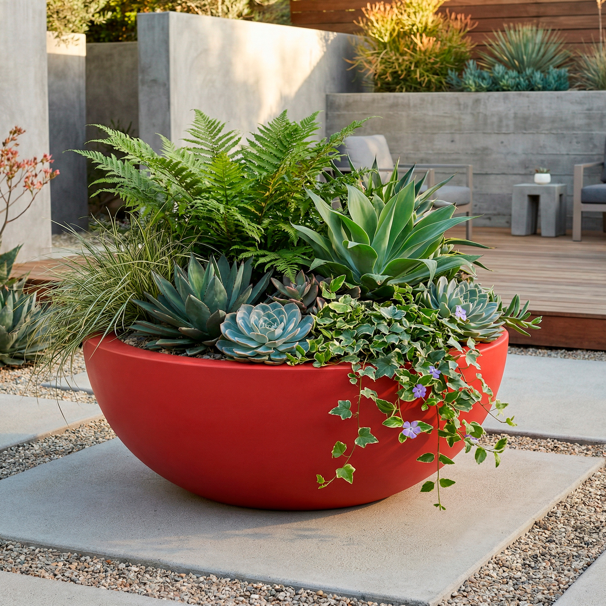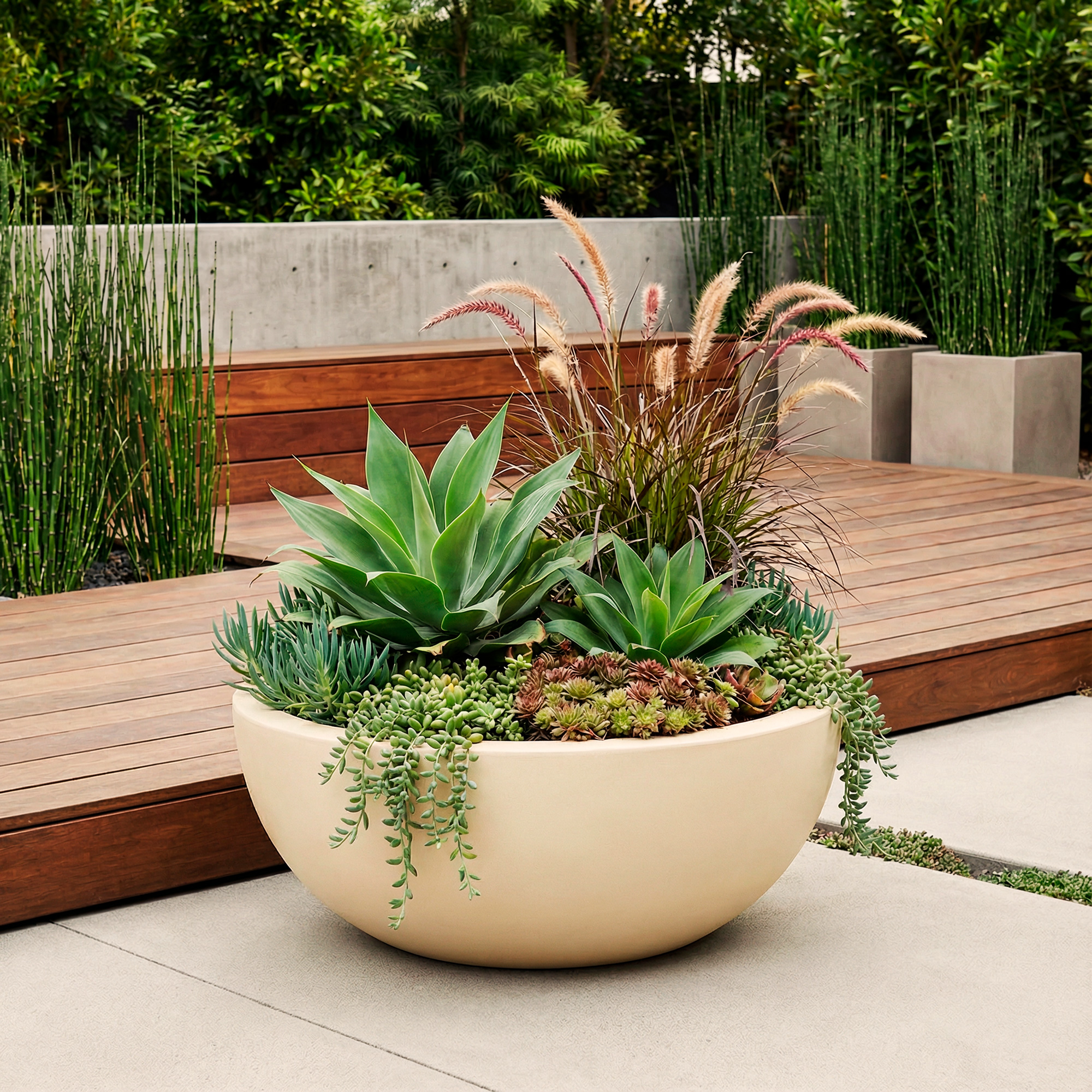 The Bowl Shaped GRP Planter is available in four different sizes. These bowls are a perfect addition to any home singularly or as a group.