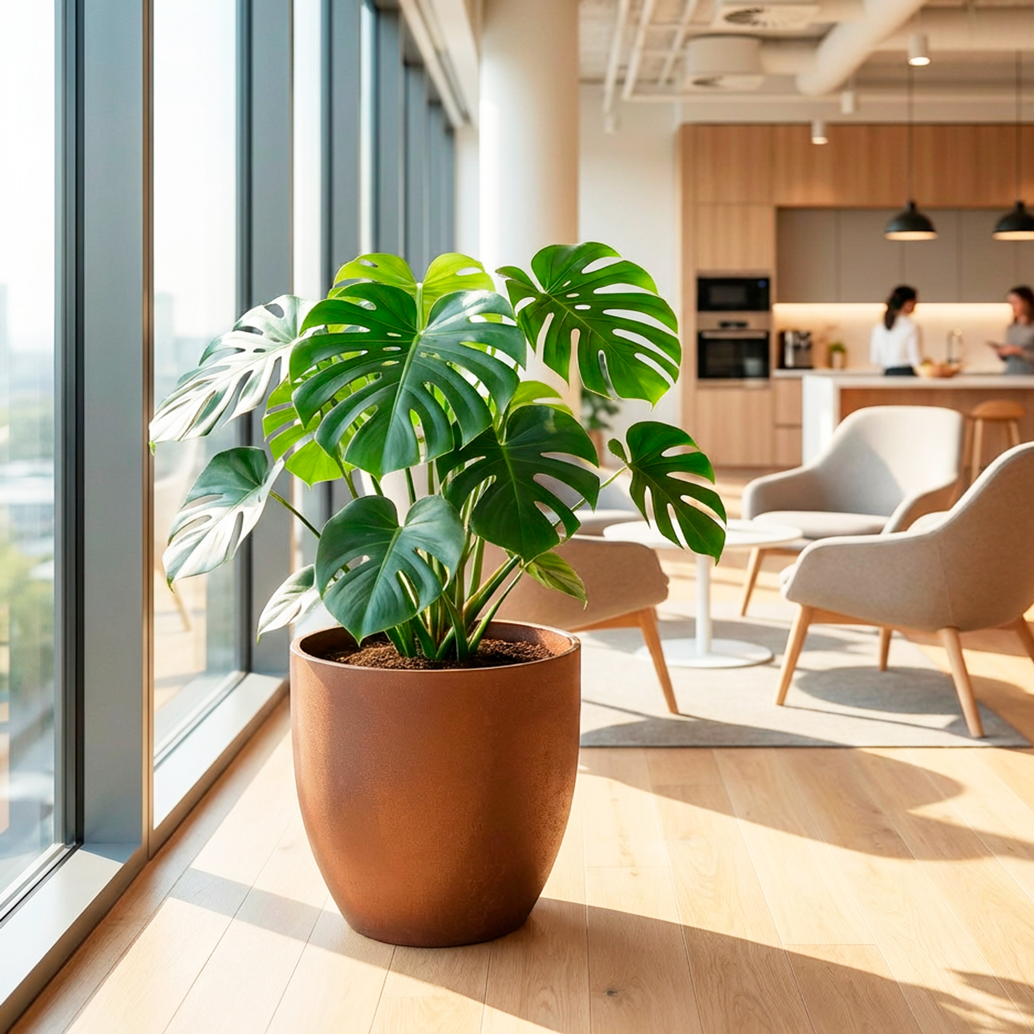 The planter’s refined style comes from its clean, simple lines and lip-free finish, creating a calm architectural presence that complements both contemporary interiors and more classic spaces. Its lightweight construction makes installation and repositioning straightforward, while the fibreglass structure ensures it remains strong, durable, and suitable for a wide range of planting schemes.