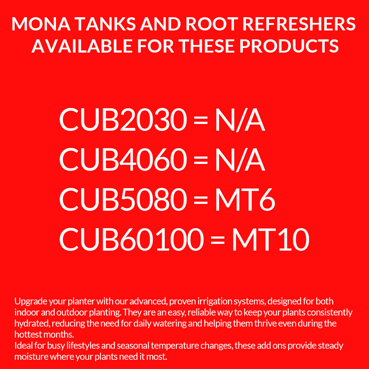 All “square” planters, sizes are listed as Length x Width x Height.