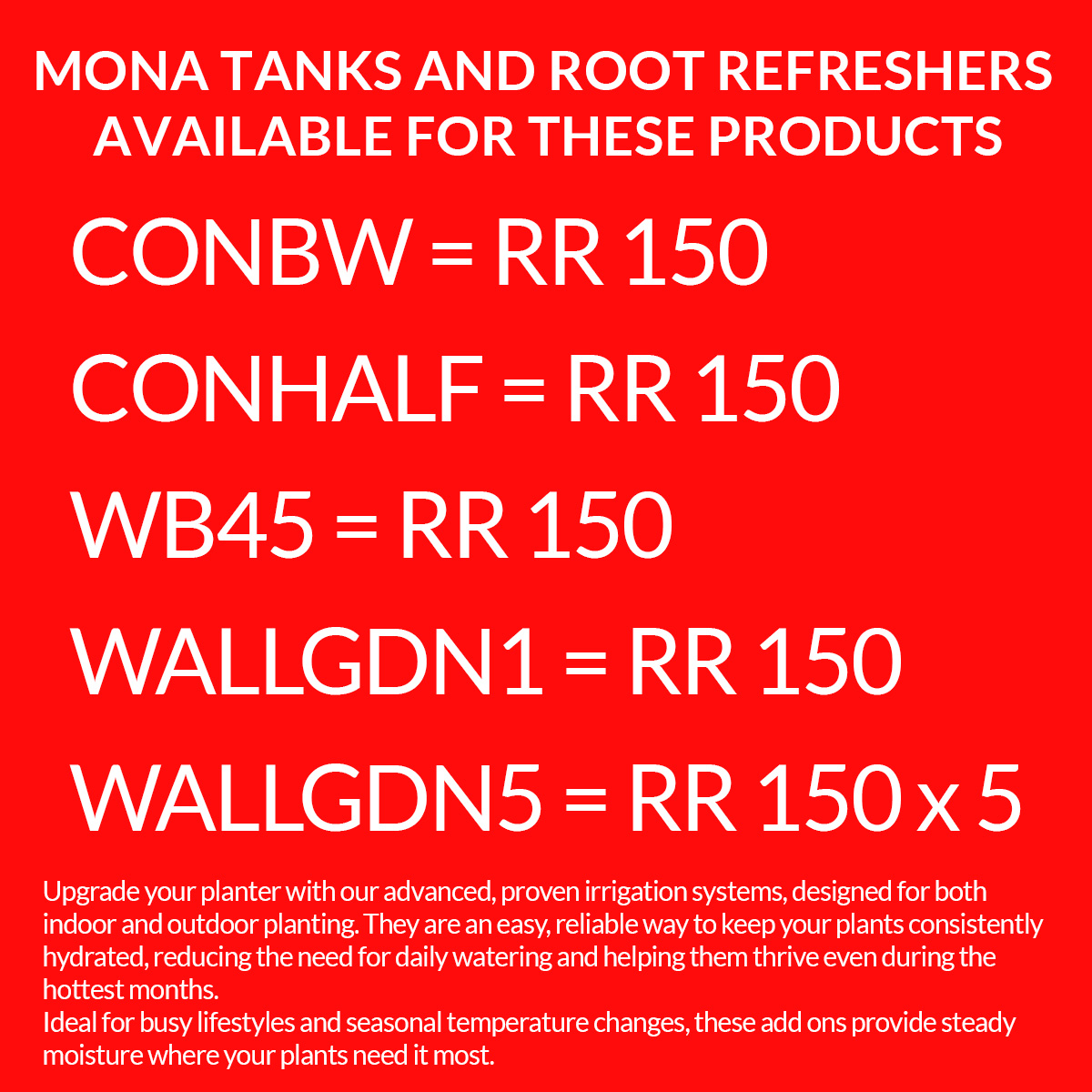 | Colour or Effect | Black, White, Light-Grey, Dark-Grey, Red, Yellow, Burgundy, Dark-Green, Bright-Green, Orange, Fuchsia, Dark-Brown, Terracotta, Dark-Blue, Light-Blue, Purple, Gunmetal, Dark-Copper, Bronze, Silver, Concrete-Effect, Quartz, Light-Copper, Limestone, Corten1, Weeping-Red, Weeping-Blue, Weeping-Green, Sandstone, Grey-Granite, White-Granite, Gold |