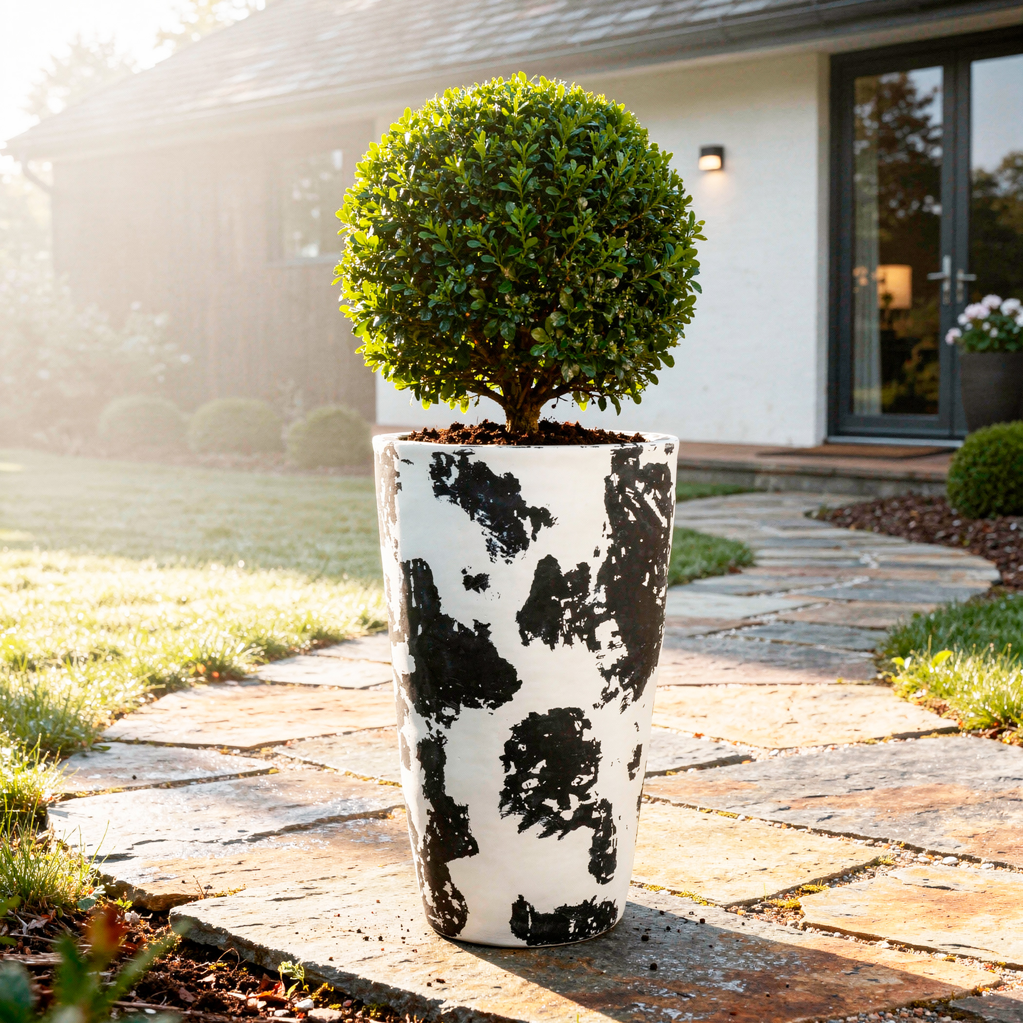 The Polperro (TC) planter is a beautiful pot that adds a touch of traditional charm to any space. Available in 4 Colours/Effects: Monochrome (black and white), Pistachio (green), Pecan (brown) and Latte (cream).